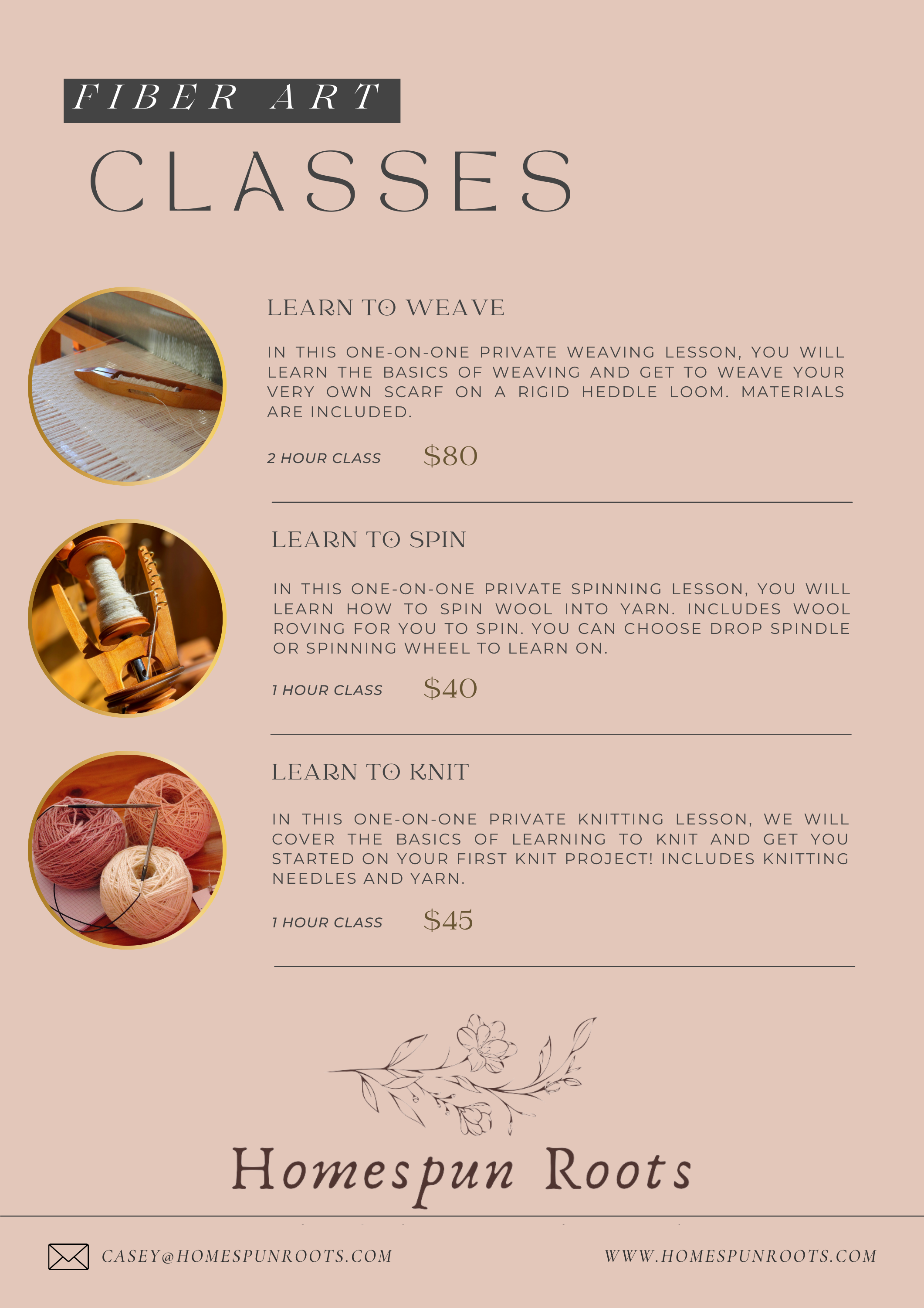 I will send out a Workshop Email upon registration with more details and information. If no email received, please reach out at casey@homespunroots.com